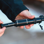 The EnCase Pump 30cc is one of the smallest pumps on the market. It was developed for use with tyres for mountain, gravel, and fat bikes, requiring less force per pump stroke than competitor pumps to inflate high-volume tyres. The EnviroLock sealing is best-in-class, which means that the internal components are protected from water and trail debris with the waterproof seal. When stored on a frame using the included mount, the pump is easy to access and ready to use without worrying about mud or grit affecting pump performance.