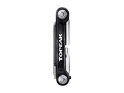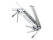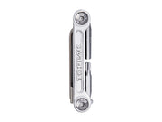 9 function pro quality tool folds in a sleek forged alloy body. An additional removable folding tire lever stores inside the tool body for a streamlined profile. Perfect for long road rides or endurance mountain biking. Includes a neoprene bag.