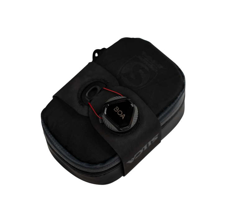 A high friction Hypalon strap with BOA® Closure completes the package. Making more than 15x the power of Velcro®, the BOA® Closure uses a ratcheting mechanism that will not creep or loosen even under the most extreme vibration and impact. This ensures the Mattone will remain high and tight‚ under your saddle until you need to access it... no swinging, swaying, or rattling... ever!